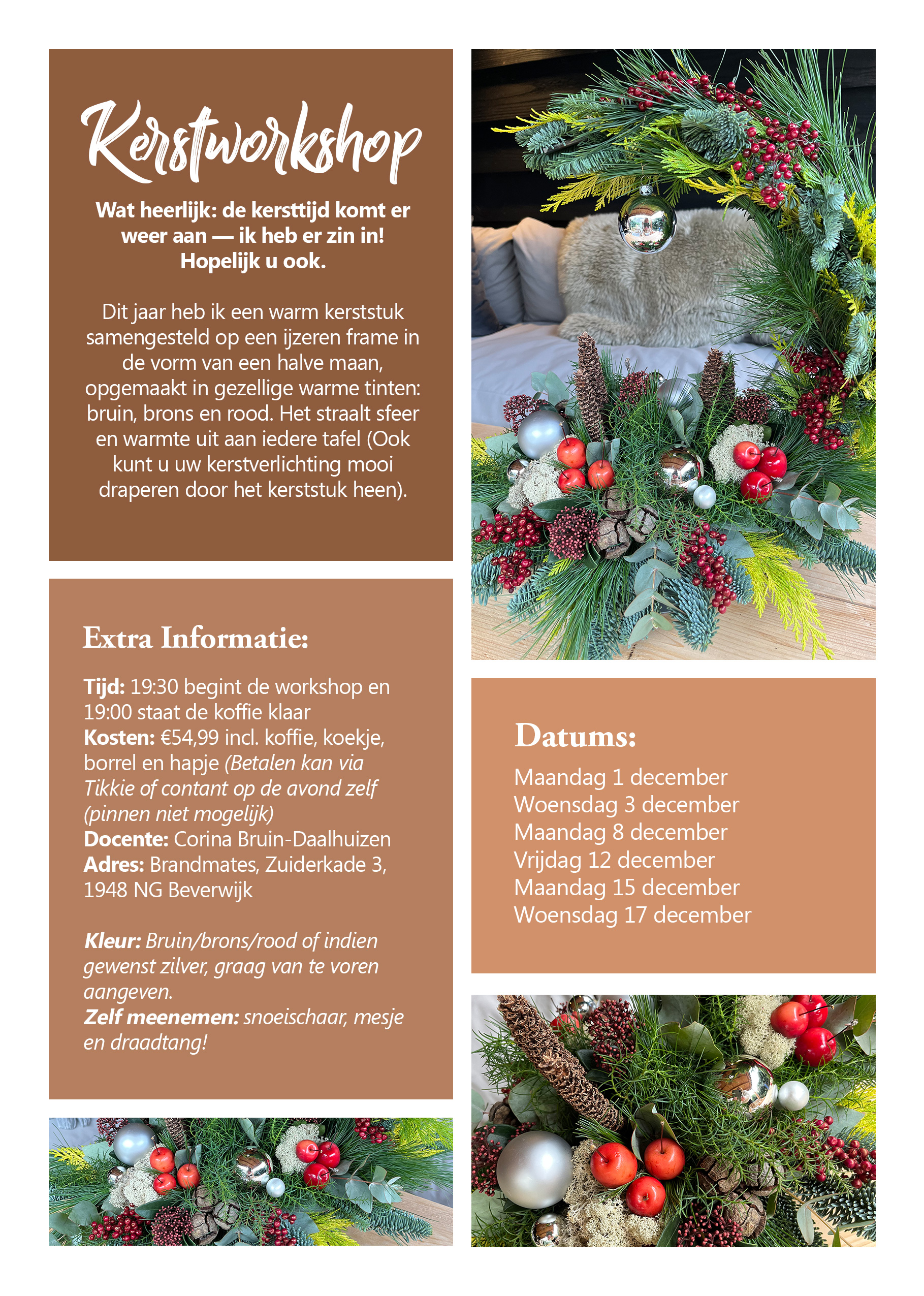 Zijn alle avonden vol? Dan plan ik graag een extra datum in. Ook voor bedrijven of grotere groepen kan een aparte workshopdatum worden geregeld.
